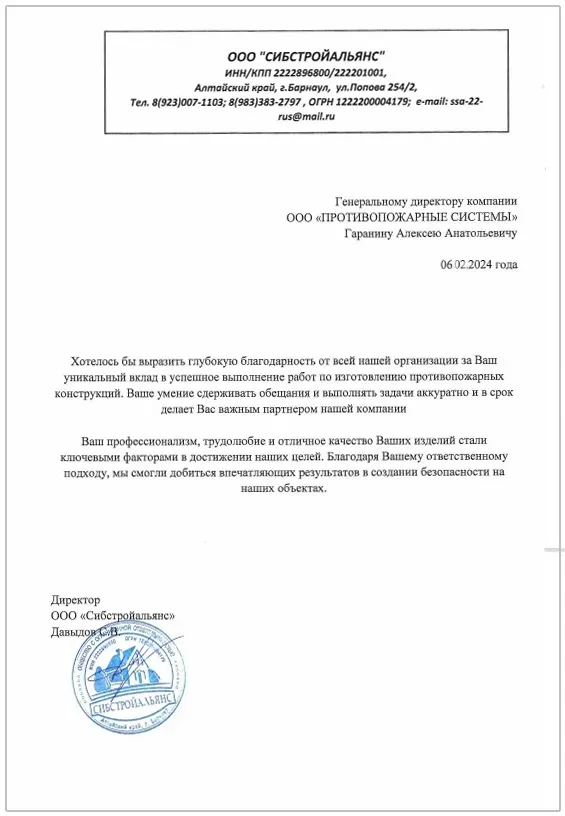 Благодарственные письма